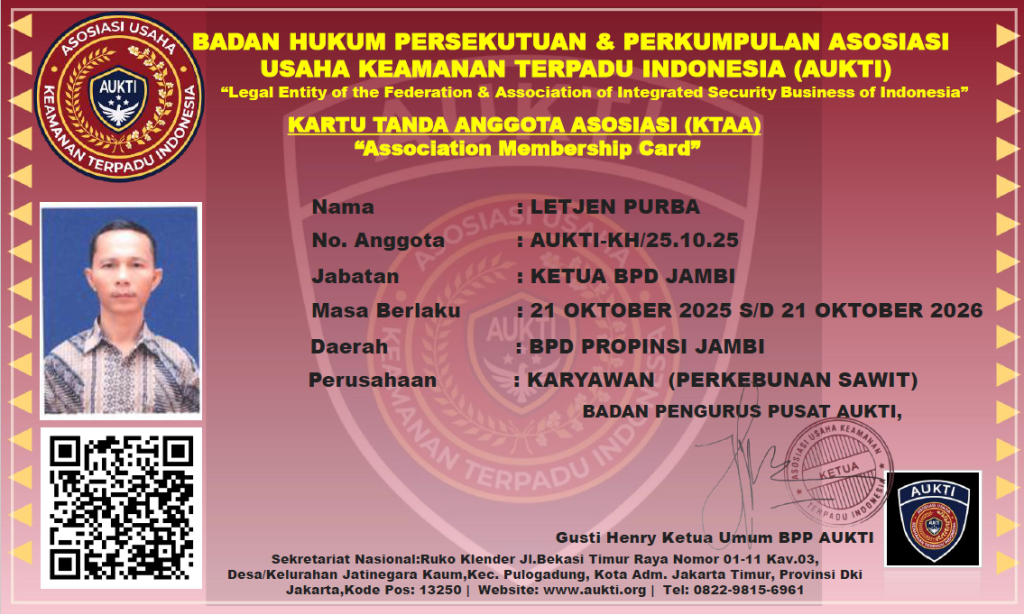 “KTA AUKTI adalah simbol legalitas, integritas, dan kebanggaan sebagai bagian dari komunitas profesional keamanan terpadu Indonesia.”