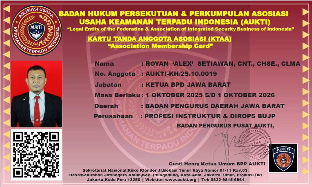 “KTA AUKTI adalah simbol legalitas, integritas, dan kebanggaan sebagai bagian dari komunitas profesional keamanan terpadu Indonesia.”