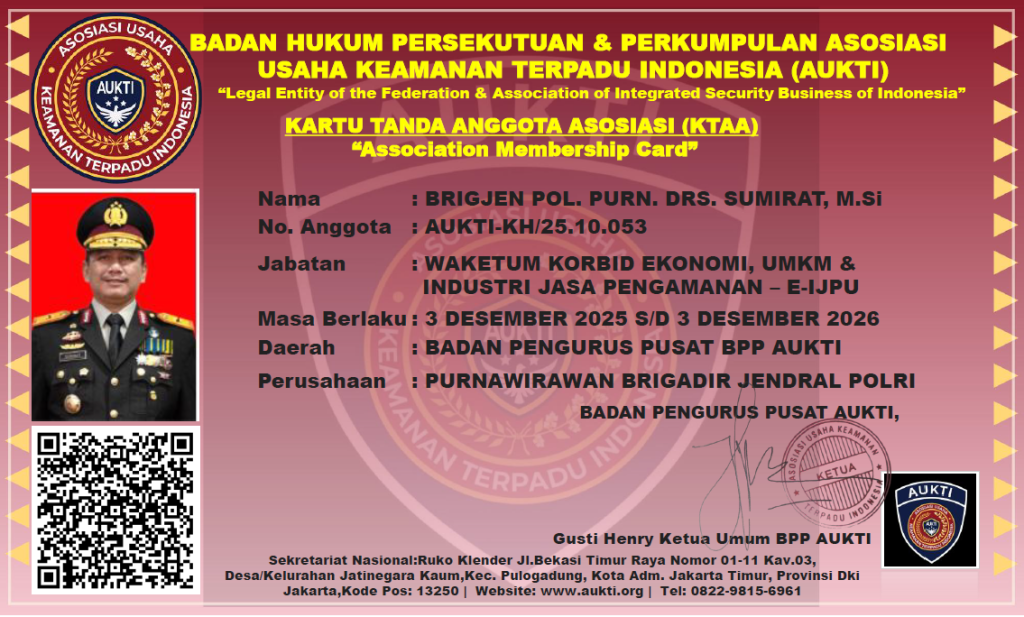 “KTA AUKTI adalah simbol legalitas, integritas, dan kebanggaan sebagai bagian dari komunitas profesional keamanan terpadu Indonesia.”