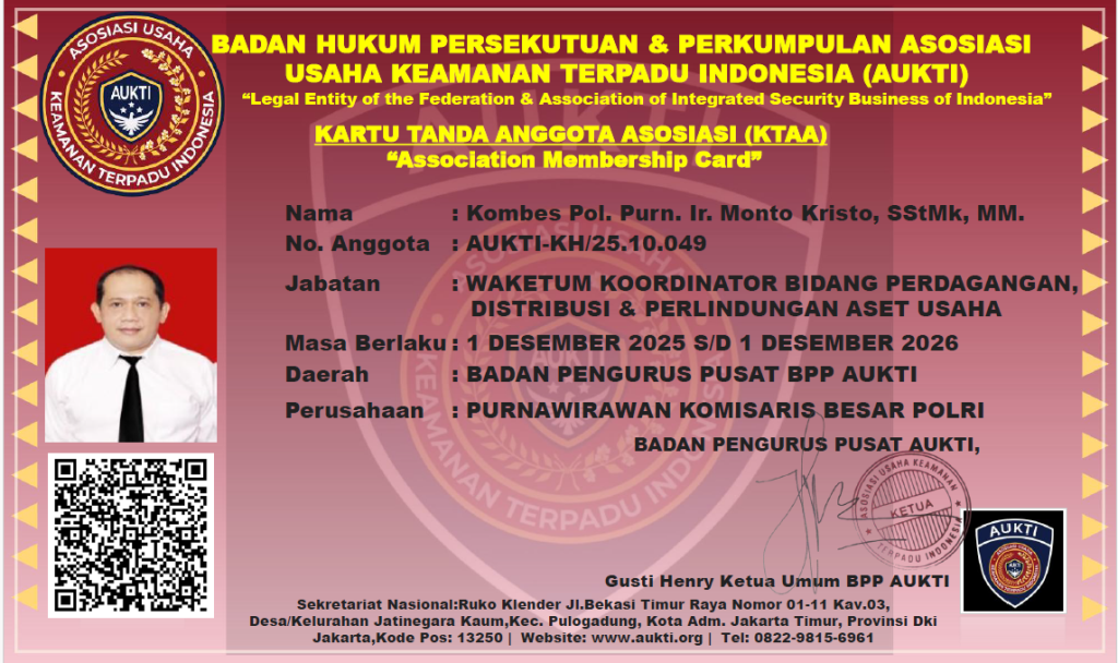 “KTA AUKTI adalah simbol legalitas, integritas, dan kebanggaan sebagai bagian dari komunitas profesional keamanan terpadu Indonesia.”