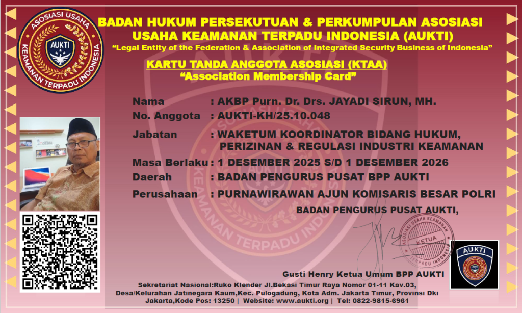 “KTA AUKTI adalah simbol legalitas, integritas, dan kebanggaan sebagai bagian dari komunitas profesional keamanan terpadu Indonesia.”